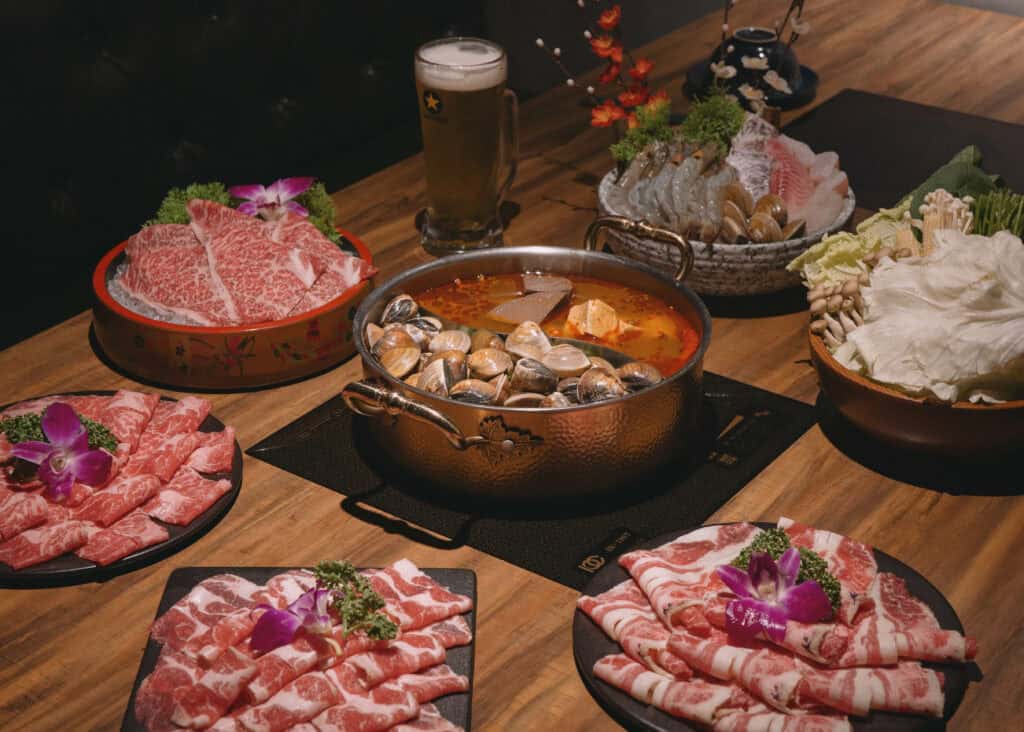 在這裡,餐酒館般的高質感空間不只是吃火鍋,更像是一場視覺與感官的享宴;三款湯底:麻辣厚香、青花椒清爽、爆量蛤蜊鮮甜都各具魅力,讓人一試難忘;副餐配上「月見鮭魚卵寶石丼」與「月見銷魂牛肉飯」這樣既好吃又好拍的附餐,整個用餐過程不只是填飽肚子,更是一段視覺、味蕾與回憶的優雅交纏。